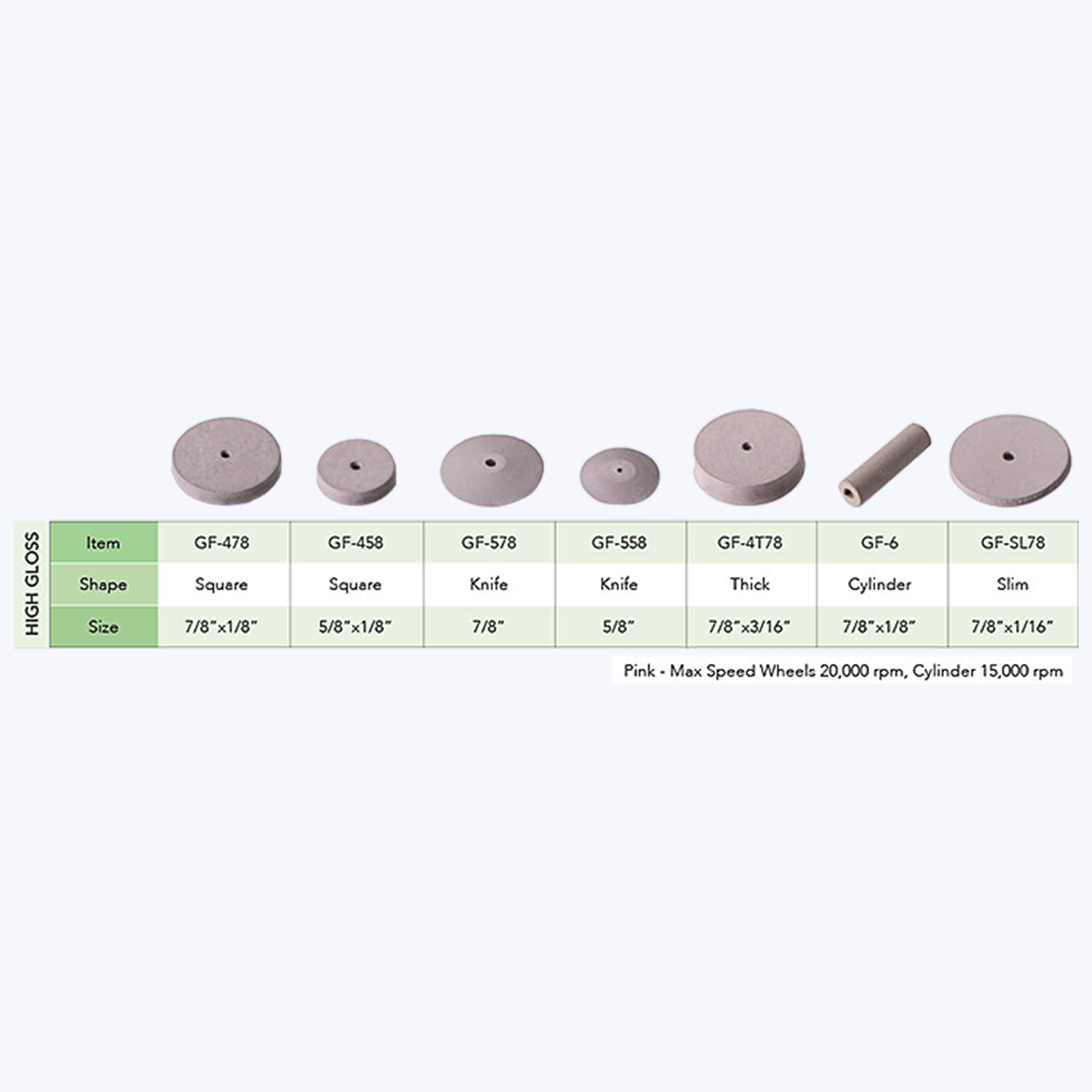 - Pink - Max Speed Wheels 20,000 rpm, Cylinder 15,000 rpm